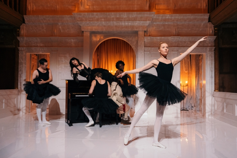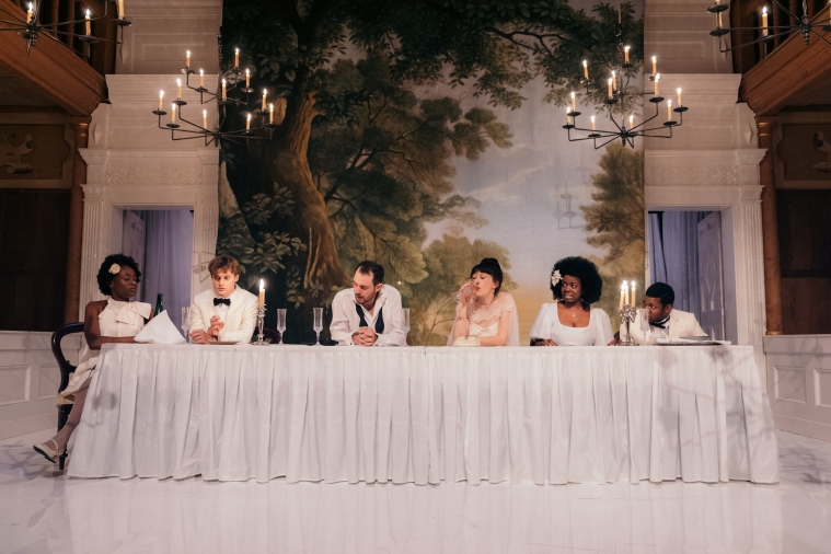 We looked at lots of films, like, The Death of Stalin, for the way it portrays comedy, but in quite a dark context, in a world of corruption and power. The Thief, The Cook, His Wife and Her Lover is another film that has been really inspirational as well, in terms of the sort of world it creates. It is again about power dynamics, sexual power and politics, combining in a world that’s quite dreamlike. We found the uncanniness of that world quite inspiring for our production.