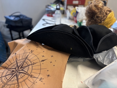 Nowadays it is common for backcloths to be printed rather than painted so it was a particular joy that we got to utilise the original Bristol Old Vic paint frame (one of very few still existing in the country) for the brilliant Cliff Thorne and his team to paint a huge replica of the original Robert Louis Stevenson map to use as our backdrop. It’s an absolutely stunning piece of artistry.